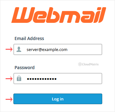 1. Open http://example.com/webmail, replace example.com with your domain name, enter your full email address and password in user login details, and click on Login.