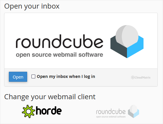 2. From the cPanel's Webmail Page, click on any Webmail email reader such as Horde, Roundcube, or any other available application.