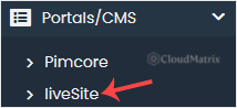 4. On the left side, locate the Portal/CMS category. Click on it and then on the liveSite link that appears.